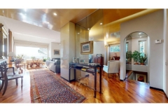 Gelegen op een bevoorrechte locatie in het pittoreske Parco della Valle del Lambro, vertegenwoordigt deze villa met privézwembad het toppunt van elegantie en luxe midden in de natuur. Omgeven door weelderige landschapsarchitectuur, biedt deze woning een oase van rust op loopafstand van het bruisende stadsleven. Het pand is geïnspireerd op het beroemde "Waterfall Villa"-project van Frank Lloyd Wright en wordt gekenmerkt door grote leefruimtes, panoramische terrassen en een goed onderhouden privétuin. Gebouwd in 1960, leidt de ingang naar de lichte en elegante woonkamer met een ruime volledig uitgeruste keuken, het hart van het huis, perfect voor liefhebbers van koken en indruk maken op hun gasten. De woonkamer leidt naar een eerste slaapgedeelte dat wordt gekenmerkt door een luxe master suite met eigen badkamer met ligbad en studeerkamer, die een elegant en privé toevluchtsoord bieden. Op de benedenverdieping is er een grote gang die leidt naar een tweede slaapgedeelte, gekenmerkt door twee slaapkamers, een badkamer met douche en een grote inloopkast. Verderop twee andere exclusieve slaapkamers, met op maat gemaakte inbouwkasten, en-suite badkamers uitgerust met douche en bad. Het pand heeft een elegante taverne, perfect voor het delen van momenten van ontspanning met familie of vrienden. De taverne heeft een ruime woonkamer met een semi-bewoonbare keuken. De waarde ervan wordt nog belangrijker dankzij het mozaïek van de beroemde schilder Salvatore Fiume. Het interieur is tot in het kleinste detail verzorgd, met hoogwaardige materialen en luxe afwerkingen. De ruime kamers en gemeenschappelijke ruimtes verwelkomen gasten in een sfeer van comfort en verfijning. Dankzij de grote panoramische ramen kunt u genieten van een adembenemend uitzicht op het omringende landschap, waardoor een directe verbinding ontstaat tussen de binnen- en buitenruimtes, dankzij een terras van 123 vierkante meter. De privétuin van 2200 vierkante meter die het pand omringt en de veranda met barbecue en tafeltennis bieden een serene en goed onderhouden omgeving waar u aangename momenten buiten kunt doorbrengen. Om de ontspanningservaring compleet te maken, is er een privézwembad, ideaal om af te koelen tijdens warme zomerdagen. Ten slotte is er een dubbele buitenbox (62 m²), een overdekte ruimte voor het stallen van voertuigen of gebruik als hobbyruimte en twee overdekte parkeerplaatsen (40 m²) om de bescherming van het voertuig te garanderen. Deze villa vertegenwoordigt een buitengewone kans voor wie op zoek is naar een prestigieuze residentie met royale ruimtes en hoogwaardige afwerkingen. Onlangs zijn er renovaties uitgevoerd. Meer weten?