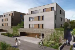 Dit moderne appartement is gelegen aan de Rue Hiehl in Junglinster, een charmant dorp dat bekend staat om zijn groene omgeving en centrale ligging. Het complex wordt gebouwd vanaf het vierde kwartaal van 2025 en bestaat uit twee gebouwen met in totaal negen appartementen per gebouw. De locatie biedt een goede balans tussen rust en nabijheid tot het centrum van Junglinster, waardoor voorzieningen en faciliteiten makkelijk bereikbaar zijn. Het appartement heeft een netto woonoppervlak van 82,84 m², aangevuld met een royale terras van 21,57 m². Binnen vindt u twee slaapkamers, een badkamer met douchecabine en een open keuken die aansluit bij de leefruimte. Het appartement is voorzien van een lift en wordt geleverd inclusief één kelderruimte en twee parkeerplaatsen binnen. De verwarming is niet specifiek omschreven en er zijn geen zonnecollectoren of vloerverwarming aanwezig. Het energielabel is A, wat wijst op een energiezuinig gebouw. De buitenkant van het gebouw kenmerkt zich door een ontwerp dat inspeelt op de topografie van de natuurlijke omgeving, ontworpen door Christian Bauer & Associates Architects. Het project wordt gekenmerkt door een dorpse, groene uitstraling met aandacht voor een aangename leefomgeving. Het complex is ook geschikt voor mindervaliden en biedt voorzieningen die bijdragen aan een comfortabel woonklimaat. De prijs bedraagt €956.240 en omvat onder meer de aankoop van de woning, een kelder en parkeerplaatsen. Meer weten?