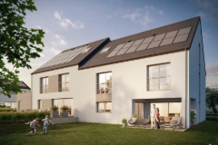 Gelegen in het rustige Ell, biedt deze moderne woning van drie gevels een unieke combinatie van ecologie en hoogwaardige afwerking. De woning beschikt over zonnepanelen en een laadstation voor uw elektrische auto, wat bijdraagt aan een aanzienlijke verlaging van uw energiekosten. De begane grond omvat een ruime woonkamer die uitkomt op een terras, een aparte toilet en een enkele garage, ideaal voor een gezin dat ruimte en comfort waardeert. Op de eerste verdieping bevinden zich vier slaapkamers, perfect voor grote gezinnen of voor wie extra ruimte nodig heeft voor een kantoor of hobbykamer. Verder zijn er twee badkamers en een wasruimte, wat de dagelijkse routine vergemakkelijkt. De zolder biedt extra opslagruimte of kan naar wens worden ingericht. Deze woning is voorzien van een duurzaam houten frame van TomWood en komt met een gegarandeerde vaste prijs. De vermelde prijs van 1 053 495 € omvat zowel het terrein als de woning, inclusief BTW van 3% en 17%, afhankelijk van de goedkeuring door de belastingdienst voor het verlaagde tarief. Dit maakt het niet alleen een milieuvriendelijke keuze, maar ook financieel aantrekkelijk onder de huidige regelgeving. Bent u op zoek naar een duurzame en kwalitatief hoogstaande woning in een serene omgeving? Dan is dit wellicht uw toekomstige thuis. Meer weten?