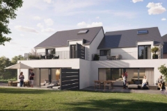 BELVAUX : Maison unifamilale jumelée Fisconsult Real Estate et Immo Sooo Service vous proposent un nouveau projet de vie : Une maison unifamilale ouverte sur un grand jardin et disposant d’un grand séjour, de 5 chambres, de 3 salles de bains/douche, d’une belle terrasse et de combles aménageables. L’architecture est élégante et privilégie la luminosité, les grands espaces et l’art de vivre. Un grand garage intérieur (double place) et une cave se trouvent au rez-de-chaussée, un emplacement extérieur a également été prévu devant l’entrée. Située à Belvaux dans la commune dynamique de Sanem (canton d’Esch-sur-Alzette), proche de toutes commodités et de ses espaces verts, vous ne serez qu’à 2 pas de la gare, à moins de 3 km de Belval et ses centres commerciaux. La maison de 286m2 (N°93) avec logement intégré (31,02m2) se composera comme suit : Au rez-de-chaussée, un emplacement de parking extérieur donnant sur un double garage (en enfilade), une cave (7,25m2), un logement intégré avec salle de douche (31,02m2). Au rez-de-jardin, le hall (14,97m2) dessert un grand séjour/cuisine (43,01m2), une chambre (14,64m2), une seconde chambre ou bureau (11,70m2), une salle de douche (3,54m2), un wc (1,62m2) et une grande terrasse (28,35m2) donnant sur le jardin. Le premier étage comprend une suite parentale avec sa salle de bains privative (18,82m2 + 5,7Om2), une terrasse (17,40m2), une chambre (14,26m2), une salle de bains (5,78m2), une chambre (11,99m2), un débarras (2,35m2) un grand hall (12,02m2). Au dernier niveau, des combles aménageables de 42,08m2 et 18,04m2. Terrain : 3 ares 42 ca Prix de vente tva 3% inclus (sous réserve d’acceptation du dossier par l’administration) = 1.290.000€ Livraison : 2026 La maison de 327m2 (N°91) se composera comme suit : Au rez-de-chaussée, un emplacement de parking extérieur donnant sur un double garage (en enfilade), une cave (8,26m2), un local technique et une entrée (19,14m2) donnant accès aux escaliers vers les étages. Au rez-de-jardin, le hall (4,58m2) dessert un grand séjour/cuisine (49,98m2), une chambre (19,02m2), une seconde chambre ou bureau (13,5m2), une salle de douche avec wc (4,95m2) et une grande terrasse (26,51m2) donnant sur le jardin. Le premier étage comprend une suite parentale avec sa salle de bains privative (25,20m2), 2 chambres (16,34m2 et 10,26m2), une salle de bain (5,19m2), un wc séparé (1,45m2), un débarras (2,44m2) et le hall de nuit (6,88m2) Au dernier niveau, des combles aménageables de 45,10m2 et 31,78m2. Terrain : 2 ares 80ca + 3 ares 2ca Prix de vente tva 3% inclus (sous réserve d’acceptation du dossier par l’administration) = 1.190.000€ Pour plus d’informations : Pierre joppart ### tél : + 352 661 81 81 30 Meer weten?