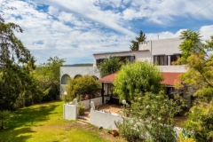 Gelegen op een rustige locatie net ten noorden van Fuseta en ten zuiden van Moncarapacho, ligt deze villa op het zuiden en baadt in natuurlijk licht en biedt een perfecte balans tussen privacy, ruimte en rust. Vanaf de poort komt u via een traditionele geplaveide oprijlaan die uitkomt op een royale parkeerplaats en een grote dubbele garage met ruimte voor twee voertuigen. Betreed via een overdekt breed terras aan de voorzijde in een lichte en uitgestrekte open woonkamer, compleet met een open haard, een eethoek en grote ramen die de natuurlijke schoonheid buiten omlijsten. De begane grond omvat ook een logeerkamer, een familiebadkamer, een kleine berging en een compacte keuken met directe toegang tot de tuin, waar u een inbouw barbecue en een buitengootsteen vindt, ideaal om het hele jaar door te entertainen. Boven zijn er 2 lichte en luchtige slaapkamers met toegang tot een balkon en een dakterras met uitzicht. Alle slaapkamers zijn voorzien van inbouwkasten en één van hen heeft een eigen badkamer. De woning is voorzien van dubbele beglazing en horren. Bovendien omvat het pand een onafhankelijk bijgebouw aan het hoofdgebouw, bestaande uit twee slaapkamers, een badkamer, keuken en een eigen terras en buitenruimte, ideaal voor uitgebreide familie, gasten of zelfs verhuurmogelijkheden. Gelegen op een volledig omheind perceel van 6.000 m², is het terrein volgroeid en prachtig aangelegd, met irrigatie, schaduwrijke zitjes en een overvloed aan ruimte voor tuinieren of vrije tijd. Het zoutwaterzwembad van 12x5,5 m is omgeven door royale zonneterrassen en wordt aangevuld met een verzameling extra bijgebouwen niet ver van het zwembad, waaronder: Een bijgebouw met een badkamer en een buitenbarbecue Een aparte structuur met drie onafhankelijke kamers Een extra kamer met een Turks stoombad Deze veelzijdige ruimtes, hoewel ze volledig gerenoveerd moeten worden, bieden een enorm potentieel voor het creëren van gastenverblijven, wellnessfaciliteiten of creatieve studio's. Achter de garage vindt u ook een traditionele waterreservoir, die karakter en praktische wateropslag aan het pand toevoegt. Gelegen op minder dan 10 minuten rijden van de zee en 5 minuten van Moncarapacho, biedt deze karakteristieke villa een serene sfeer en alles binnen enkele minuten van de stadscentra en lokale voorzieningen. Of u nu op zoek bent naar een familielandgoed, een vakantieverblijf of een investering met verhuurpotentieel, deze woning heeft veel potentieel en is een zeldzame vondst in de Algarve. Een must-see kans voor wie op zoek is naar ruimte, veelzijdigheid en charme in gelijke mate. Meer weten?