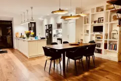 Unieke eigendom in São Martinho do Porto (referentie: W_São_1) Dit, op het eerste zicht, kleine huisje met typisch Portugese uitstraling zal je aangenaam verrassen eens je het betreedt. Oorspronkelijk was dit een kazerne. Nu is het omgebouwd tot een ruime woonst met extra's. De woning biedt luxe en comfort en is geschikt voor een grote familie of meerdere generaties waarbij de privacy gegarandeerd blijft. In feite zijn het 2 afzonderlijke woningen met elk hun eigen ingang in een andere straat, gelinkt door een gemeenschappelijk binnenplein. De eerste woning heeft op de begane grond een woonkamer met eethoek en keuken. Er is een lichtrijke inkomhal en gastentoilet. Daarnaast heb je directe toegang tot de buitenruimte met buitenkeuken, een aparte wasruimte, bergruimte en een privé terras. Op de eerste verdieping is er een ruime slaapkamer met walk-in-closet, een kleinere slaapkamer met toegang tot een terras en een badkamer met douche en bad. De derde verdieping bestaat uit een grote ruimte die als bureel of ontspanningsruimte dienst kan doen, een slaapkamer en een badkamer met douche. De andere wooneenheid heeft een woonruimte met volledig ingerichte kitchenette, een privé terrasje, 2 slaapkamers en een badkamer. Voorzieningen: elektrische vloerverwarming met WIFI thermostaat warmtepomp van 300L laminaat Swiss Krono 14mm AC5 aluminium ramen met dubbel glas Opp. perceel: 154m² Bebouwde opp.: 355m² Energielevel B - Volledig gerenoveerd in 2021 Meer weten?