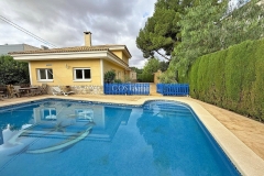 Situated on a generous 1,208 m² urban plot, this impressive property offers two independent homes, each with its own entrance and access to the drive and swimming pool. Perfect for a rental opportunity, the property benefits from a convenient location just 15 minutes from Alicante and the airport ideally situated for schools, supermarkets and the hospital making it ideal for families. The house was originally one property and with the removal of one wall it could easily revert back to being one large property if so desired. The first home, located on the ground floor, features a comfortable living room with an open-plan kitchen, two bedrooms with views of the pool, a pantry, and a bathroom. The outdoor area includes a built-in barbecue, perfect for entertaining. Upstairs, you'll find two additional bedrooms with access to a large terrace and a second bathroom. The second home offers ample space with a cozy living room and fireplace, a kitchen, three bedrooms (two double and one single), and two bathrooms. A spacious terrace and barbecue area provide even more room for outdoor living. Both homes are equipped with ducted hot and cold air conditioning, each with its own independent system. The villa also has a beautiful 12x5 m swimming pool, a beautifully maintained garden, an electric entrance gate, and parking space. Additionally, a small outbuilding to the rear offers useful storage space. This is an ideal property if you are looking for extra income from the rental opportunity or are looking to accommodate a large family. Meer weten?