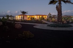 Eén van de mooiste villa's op het eiland en heel goed geprijsd met een gegarandeerde 25 graden en meer in de wintermaanden. Wanneer we de elektrische poort openen zien we een indrukwekkende oprit van 950 m2 betegelde natuursteen omringd door een onderhoudsvrije botanische tuin met een grote verscheidenheid aan cactussen en tropische planten. Achter de villa bevindt zich een fruitboomgaard van 1000 m2 met: olijf/papaja/sinaasappel/citroen/limoen/guanabana/passievrucht/banaan/vijg/amandel/abrikoos/bessen/druif/mango/avocado/appel. Dit alles uitgerust met een vol automatisch irrigatiesysteem met de leidingen ondergronds. Het afvalwater is uitgerust met een generatiesysteem en wordt hergebruikt voor de irrigatie van de tuin. Er is een watertank van 5000 liter voorzien ingeval van waternood. Het huis is volledig omheind met een hoge muur van 250 cm en 20 cm dik voor totale privacy. Bij binnenkomst in de villa wordt men verwelkomd door een prachtige zwarte granieten vloer die overal in het huis aanwezig is. Rechts van de hal bevindt zich een grote patio met een hoog plafond en koepel in. Verderop is de grote woonkamer met aangrenzend een veranda van 30 m2. Vanuit de woonkamer komen we in de moderne keuken met een massief granieten werkblad van 6 cm dik, de keuken is uitgerust met alle inbouwapparatuur: vaatwasser/magnetron/oven/inductiekookplaat/koelkast/vriezer/ etc.... Aangrenzend aan de keuken is een kamer met wasmachine droger en voorraadkast. Vanuit deze ruimte komt u in een open patio waar u de was kunt drogen. De villa heeft 5 slaapkamers waarvan er 2 worden gebruikt als fitnessroom en één al dressingroom. Twee slaapkamers hebben hun eigen badkamer. Er is een grote garage met werkplaats alsook een grote carport van meer dan 3 meter hoog en 8 meter lang. Het huis heeft een zonneboiler. 15 muziekboxen zijn in de muren ingebouwd alsook enkele in de buitenmuren voor een perfecte sound. Rondom het huis ligt een betegelde vloer van 400 m2 waar u op elk hoekje van het huis kunt genieten van een terras. Vanuit de keuken kunt u ook naar buiten gaan waar zich een grote open patio bevindt van meer dan 50 m2 met stenen meubilair en een betegelde barbecue tafel. Buiten is er een gloednieuw rots zwembad en jacuzzi, achter het zwembad bevindt zich een betonnen put van 30.000 liter waar u water kunt opslaan. Ondanks het feit dat het superveilig is in de omgeving heeft het huis een alarmsysteem. Naast het alarmsysteem is het uitgerust met een 10-tal camera's in en rond de woning waarmee u alles gemakkelijk in de gaten kunt houden via uw smartphone. Daarnaast kunt u met uw smartphone de poort openen, de lichten aan-en uitzetten en verschillende andere functies bedienen waar u ook ter wereld bent. Dit systeem biedt niet alleen gemoedsrust en veiligheid maar ook praktische luxe en innovatie die uw dagelijks leven moeiteloos laat verlopen. Ondanks dat de villa erg rustig is gelegen ligt het niet ver van de zee en heeft u snelle toegang tot het openbaar vervoer, winkels, doe-het-zelf-zaken, tuincenters, tankstations, lokale markt en de zoo van La Lajita. De villa is inclusief alle meubels binnen-en buiten, tuingereedschap, werktuigen, elektrische apparaten, keukenapparatuur en audio-en TV apparatuur. Naast de praktische aangelegde botanische tuin en luxe faciliteiten beschikt de villa over een extra omheind terrein van 3000 m2 dat naar wens kan worden gebruikt. Dit biedt talloze mogelijkheden zoals het aanleggen van een olijfgaard, het houden van paarden of andere dieren of het aanleggen van een privé tennisbaan. Het terrein kan ook worden ingericht als recreatiegebied met een speelveld, een wijngaard of een buitenlounge met een pergola en open haard. De villa zou ook zeer geschikt zijn voor een luxe B&B. De mogelijkheden zijn eindeloos. Deze villa is een zege van schoonheid, maar ook van luxe en elegantie. Van de hoofdingang tot elk hoekje van de tuin, u zult verliefd worden op dit huis. Meer weten?