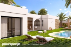 Deze fantastische moderne villa's worden gebouwd op het populaire 'Altaona Golf & Country Village' resort in Murcia. Het resort is zeer goed gelegen zowel voor permanente bewoning als voor een woning als vakantieverblijf. Op het domein zelf dat gelegen is tegen het natuurpark 'Sierra Altaona' en maar liefst 360 hectare groot is, bevinden zich allerlei faciliteiten zoals een winkelcentrum, tennis-, padel- en basketbalvelden en uiteraard de golfbaan. Het levendige stadscentrum van Murcia bevindt zich op slechts 15 minuten van dit groen domein. Het volledig afgesloten resort geniet bovendien van een 24u 7/7 beveiliging en wordt perfect onderhouden door verschillende onderhoudsfirma's.U kan binnen dit project kiezen uit verschillende types. Dit model wordt gebouwd op percelen van 405 m² en beschikt over 3 zeer ruime slaapkamers en 2 badkamers. Alles op het gelijkvloers. Indien u een verdieping extra wilt, is dit mogelijk in een ander type.De leefruimte met open keuken leent zich ertoe om bij goed weer tot 1 geheel te bekomen met de buitenruimte. U voelt het al, met een gemiddelde van 320 dagen zon per jaar in Spanje zullen deze brede raampartijen meer open dan dicht zijn.In de fantastische tuin zelf bevindt zich het terras van 30 m², waar u eventueel een open keuken kan laten installeren. U krijgt een mogelijkheid tot verfrissing in het 7x3 m groot zwembad in de tuin.Langs de zijkant van de villa is er plek om uw auto op uw perceel te parkeren.De villa's kenmerken zich door de fantastische prijs-kwaliteitsverhouding op een prachtig resort aan de Costa Cálida in Murcia.Is deze villa toch nog niet volledig op uw maat? Geen nood, binnen dit domein hebben we vele andere mogelijkheden. Meer weten?