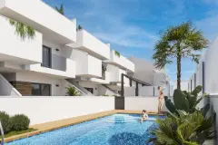 Wilt u wonen op wandelafstand van het strand? Dan is dit de woning die u zoekt! Deze villa’s zijn ontworpen voor verfijnd wonen en beschikt over drie ruime slaapkamers, waaronder een master suite met een inloopkast en ensuite badkamer. De woning ligt op een perceel van circa 200 m² en biedt optimale privacy. Geniet van een privézwembad om af te koelen en een royaal solarium waar u kunt ontspannen en genieten van het uitzicht. Een eigen parkeerplaats maakt het geheel compleet. Ideaal gelegen in het hart van San Pedro del Pinatar, een bruisend kustplaatsje met een traditionele sfeer. Binnen enkele minuten bereikt u het strand, waar u kunt ontspannen, watersporten kunt beoefenen of kunt genieten van de zon. In de directe omgeving vindt u een ruime keuze aan winkels, bakkers, apothekers, restaurants en bars. Grotere winkelcentra zoals Dos Mares liggen op slechts 10 minuten rijden. Met uitstekende verbindingen is de locatie ook ideaal voor reizigers: de luchthaven Murcia-Corvera ligt op 30 kilometer afstand en de internationale luchthaven van Alicante is binnen ongeveer een uur te bereiken. Voor golfliefhebbers zijn er meerdere golfbanen in de buurt, zoals Lo Romero en La Serena, waar u van uw favoriete sport kunt genieten. De oplevering staat gepland voor juni 2026. Wilt u meer weten over de prijzen en beschikbaarheid? Klik op het veld "Vraag de laatste prijslijst" en ontvang direct de meest actuele informatie. Wenst u meer informatie of een bezoek plannen? Contacteer ons we helpen u met plezier verder! Meer weten?