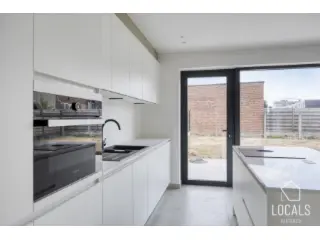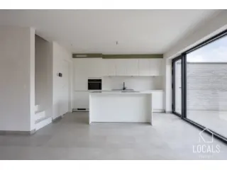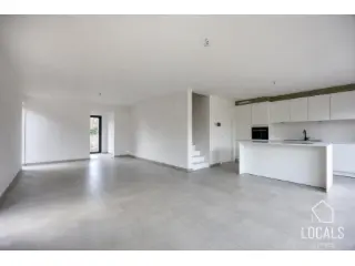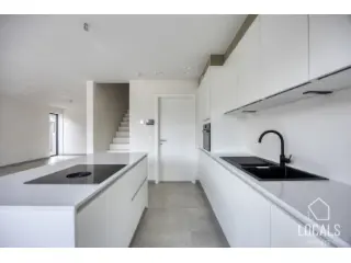 lichtrijke woonkamer met open keuken . De verdieping biedt een nachthal,