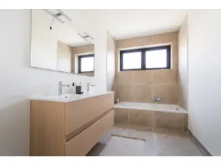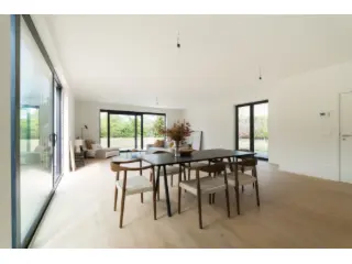 ENERGIEZUINIGE woningen met 3 gevels worden bediend door een privé weg en beschikken over een mooi achterliggend terrein. Ze bestaan op het gelijkvloers uit een inkomhal met gastentoilet, een bureau (of 5e slaapkamer), een ruime living met grote schuiframen en eetplaats met open keuken (mogelijkheid om deze te sluiten). Op de verdieping: een nachthal, 4 slaapkamers, 2 badkamers, afzonderlijke wc. In de kelder : grote kelders. Deze nieuwbouw met een hedendaags design zal u verleiden door zijn lichtinval en kwaliteitsvolle afwerkingen (zonnepanelen, vloerverwarming, regenwatertanks, enz.). Het beschikt over een ideale locatie voor wie werkt in Brussel, Leuven, Antwerpen, Waver, Waterloo.
