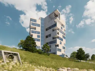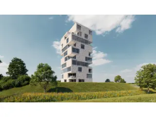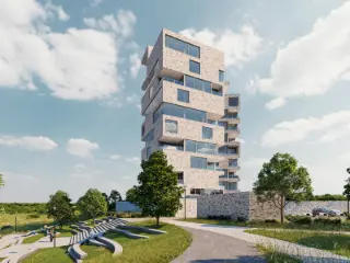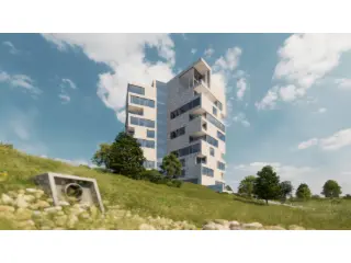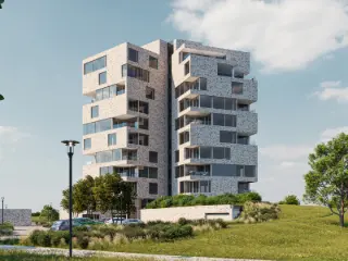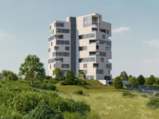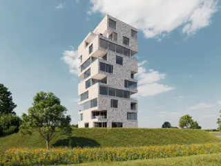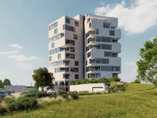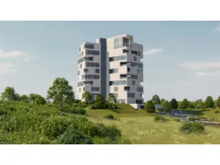 Het architecturaal ontwerp van het appartementsgebouw uit fase 1 is een echt landmark : eigentijds, krachtig en verfijnd, en ontworpen om perfect op te gaan in het landschap. Dankzij de verhoogde ligging en open zichtlijnen ervaart elke bewoner hier dagelijks het gevoel van ruimte, licht en exclusiviteit.
