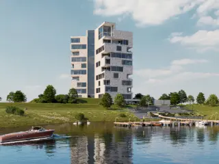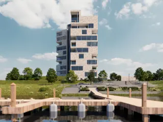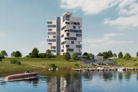 De eerste fase van Nova Eycke – nu in verkoop – bestaat uit 18 ruime, luxueus afgewerkte appartementen , elk met grote leefterrassen en een adembenemend 330° uitzicht over de Maas, het natuurgebied, de nieuwe passanthaven én het charmante stadscentrum van Maaseik.