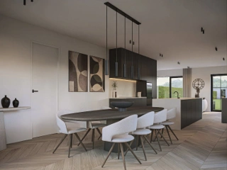 Deze nieuwbouwwoningen combineren tijdloze architectuur met hedendaagse comfort . Dankzij de heldere gevelsteen, de elegante dakvorm en de verfijnde details ademen ze een luxueuze, warme uitstraling. De grote ramen zorgen voor een overvloed aan natuurlijk licht, terwijl de slimme indeling garant staat voor een open, luchtige woonbeleving.