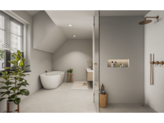Elke woning beschikt over een badkamer met inloopdouche en aansluitingen voor een ligbad.