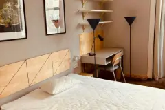 Deze charmante kamer van 30 m² bevindt zich in een gerenoveerd huis van maître aan de Rue du Beau Site in Brussel. De kamer beschikt over hoge plafonds met originele moulures, waardoor de ruimte een elegante en ruime uitstraling krijgt. Grote ramen bieden overvloedig natuurlijk licht en een uitzicht op groene omgeving, wat bijdraagt aan een rustgevende sfeer. Het interieur is verzorgd ingericht met kwaliteitsmeubilair, waaronder een dubbel bed, bureau, twee grote kasten en decoratieve muuraccenten. De privébadkamer is voorzien van marmeren details en biedt extra comfort met dubbele wastafels en voldoende opbergruimte. De kamer is volledig gemeubileerd, inclusief beddengoed, dekens en een matrasbeschermer. De gedeelde voorzieningen omvatten een wekelijkse schoonmaakdienst voor de gemeenschappelijke ruimtes en moderne installaties die zorgen voor een aangenaam verblijf. De verwarming gebeurt via gas, wat zorgt voor een efficiënte warmte in de koudere maanden. De locatie is ideaal voor zowel studenten als jonge professionals, met winkels, cafés en groene zones binnen handbereik. Op slechts 10 meter ligt de populaire Avenue Louise en het tramnetwerk naar de ULB, terwijl het metrostation Louise op 400 meter afstand ligt. De nabijheid van het centrum van Brussel, de Europese instellingen en de Universiteit maakt deze plek bijzonder aantrekkelijk voor wie graag centraal en comfortabel wil wonen. Meer weten?
