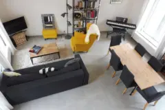 Située le long des boulevards, triplex dans maison de caractère rénovée en 2015 et ensuite récemment pour la partie énergétique. Plus en détails, au premier, cuisine full équipée avec coin à manger ouvert sur la terrasse. Chambre à coucher avec salle de douche. WC. Au second, deux chambres, une salle de bains et espace buanderie. Au dernier niveau, grand studio, parfaitement équipé avec cuisine et salle de bain, qui pourrait accueillir un adolescent. Côté technique : électricité conforme, menuiseries double vitrage en bois, chauffage par pompes à chaleur, compteurs de passage pour l'eau, panneaux photovoltaïques, etc. PEB label C - Espec : 223 kWh/m².an - E-total : 51.639 KWh/an - numéro : 20251013017706 Loyer : 1.150 € Possibilité de colocation (voir les autres annonces en cours) Meer weten?