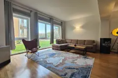 Boulevard Louis Schmidt, ideally located near the Montgomery roundabout, its shops, transport and schools, J&J Properties offers you a magnificent duplex ground floor / 1 with garden entirely refurbished in 2023. Located on the ground floor of a condominium with elevator, also entirely refurbished in 2023, the apartment is composed: on the ground floor: the night space composed of a master suite with bathroom and adjoining toilet, 2 beautiful additional bedrooms both giving access to the garden and a shower room with toilet. On the first floor: an entrance hall with checkroom and guest toilet, a double laundry room, a bright living/dining room on one side and a beautiful fully equipped kitchen on the other side with view and access to the terrace and the garden. Technical side: PEB B+, electricity in conformity, individual boiler, individual cellar, double flow ventilation, bicycle room. Provision of 100€/month for the common charges of the building. Possibility to rent the furnished apartment for 3.950€. Available from 01/09/2025. A garage and a parking space complete the unit (+150€ extra). Its location, its materials and the quality renovation are the major assets of this apartment. To come to visit without delay! Meer weten?