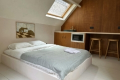 Dit charmante appartement bevindt zich in het hart van Mechelen, aan de Rik Woutersstraat, en biedt een unieke woonervaring op de bovenste verdieping van het complex 'Maison Nelle Botanique'. Met een oppervlakte van 24 m2 is deze studio ideaal voor wie op zoek is naar een compacte, maar volledig uitgeruste woonruimte. Het appartement beschikt over een mezzanine slaapkamer, bereikbaar via een stijlvolle, handgemaakte wenteltrap, waardoor de ruimte optimaal wordt benut. De woning is voorzien van grote dakramen die zorgen voor veel natuurlijk licht en een prachtig uitzicht op de Sint-Rombodoordding. De inrichting combineert natuurlijke materialen en zachte texturen, wat bijdraagt aan een gezellige en boutique sfeer. De badkamer met walk-in douche op de mezzanine voegt praktische functionaliteit toe, terwijl moderne voorzieningen zoals airconditioning voor extra comfort zorgen. De locatie is uitstekend, op korte afstand van de beroemde Vleeshalle en de Grote Markt, met een gemakkelijke toegang tot het openbaar vervoer, waaronder het treinstation op slechts 10 minuten lopen. De woning wordt gestoffeerd verhuurd, inclusief WiFi, energie, en tweemaal per week schoonmaak en linnenservice. Een ideale optie voor studenten of academische stagiaires die op zoek zijn naar een comfortabele en centrale stek in Mechelen. Meer weten?