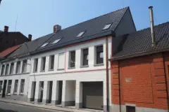 Gelijkvloersappartement met terras en autosaanplaats Rustig, doch zeer centraal gelegen gelijkvloersappartement op 1km van de Grote Markt, op minder dan 500 meter van supermarkten en school, op ongeveer 3 kilometer van de autosnelweg en nabij openbaar vervoer. Het appartement omvat een ruime inkomhal met ingebouwde vestiaire en apart toilet, twee slaapkamers, badkamer met lavabomeubel en ligbad/douche, lichtrijke woonkamer met toegang tot het zongericht terras (+/- 12m²) omgeven door groen, ingerichte keuken (dubbele spoelbak, vitro-keramische kookplaat, frigo en diepvries) met berging. Er is een private autostaanplaats vóór het appartement alsook een private kelderberging. Daarnaast is er ook een gemeenschappelijke vuilnisberging voorzien en mogelijkheid tot het plaatsen van een fiets. Syndickosten reeds inbegrepen! Mogelijkheid tot bijhuren garage. Meer weten?