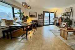 Karaktervol appartement op de 7e verdieping, gelegen tegenover het Citadelpark, vlotte verbinding met het openbare vervoer, grootwarenhuizen in de buurt, ... Het appartement bestaat uit volgende indeling: inkomhal, ruime woonkamer aan de voorzijde met veel lichtinval en parketvloer, geïnstalleerde keuken met toestellen (kookplaat, dampkap, oven, vaatwasser en frigo/diepvriezer), balkon met fantastisch zicht over de skyline van Gent, aparte berging met aansluiting wasmachine. Verder zijn er twee slaapkamers aan de achterzijde. Badkamer met ligbad/douche, lavabo en toilet. Bij het appartement hoort ook nog een praktische privé kelder. Vrij vanaf 16/11/2025. Opgelet, er is een lift tot de 6e verdieping, de laatste verdieping is met de trap. Huurprijs 995 euro/maand + 85 euro/maand gemeenschappelijke kosten incl. verbruik water + 85 euro/maand autostaanplaats (optie). Aparte meter gas en elektriciteit. Aarzel niet ons te contacteren voor meer informatie of voor een bezichtiging. Meer weten?