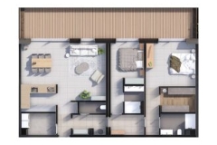 Diese Wohnung befindet sich im 2OG des Gebäudes und verfügt über eine Terrasse 40,50 m², einen PKW Stellplatz innen & außen+ Keller. Wohnfläche ca. 137 m² ( Bruttofläche) mit folgender Aufteilung ( Nettoflächen- Gesamtnettofläche ca. 120,20 m²): Flur 13,60 m² – Wohnzimmer 37,30 m² – Küche 7,60 m² – HWR 5,70 m² – Schlafzimmer 01 : 14,50 m²- Zimmer 02: 29,30 m² -Badezimmer 01: 4,50 m²- Badezimmer 02: 5,50 m² Meer weten?