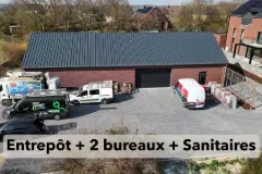 L’agence Trevi Rasquain vous propose à la location un entrepôt neuf d'une superficie totale d'environ 300 m², comprenant un espace de stockage, 2 bureaux, 2 WC et la possibilité d'y faire une salle de douche. Idéal pour du stockage ou une activité professionnelle, à proximité immédiate de l'autoroute E42 (2 min). Moderne et fonctionnel, il dispose d’une porte sectionnelle électrique et de places de parking privatives. Loyer : 1.585€ HTVA/mois (soit 1.917,85€ TVAC), + forfait de charges de 100€/mois. Disponible immédiatement. N’hésitez pas à nous contacter pour toute information complémentaire ou pour organiser une visite : ### ou ### Meer weten?