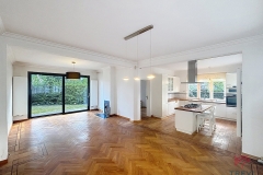 SINT-PIETERS-WOLUWE, in een aangename residentiële wijk (Vogelzang) en vlakbij Montgomery (metro)! Mooie 3-gevelwoning (5 slk / 4 bdks) met een bewoonbare oppervlakte van 338 m², tuin en 2 garages! De woning bestaat uit een inkomhal met vestiaire en gastentoilet, ruime leefruimte met parketvloer en open haard (44 m²), aparte eetkamer (20 m²) en volledig uitgeruste keuken met toegang tot het terras (10 m²) en de tuin. Op de 1e verdieping: een toilet, 3 slaapkamers (12, 13 en 31 m²) met ingebouwde kasten en en-suite doucheruimtes, en 1 slaapkamer van 9 m² met kasten en lavabo. Op de 2e verdieping: een slaapkamer van 31 m², een bureau, en een badkamer met toilet. Talrijke kelders. Wasruimte. Garagebox voor 2 wagens en buitenstaanplaatsen. Verwarming op gas. Alarmsysteem. EPC: G. Te ontdekken bij L&P! Meer weten?