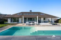 Deze exclusieve designvilla is gelegen in een rustige, landelijke deelgemeente van Brakel, die vaak wordt omschreven als de “groene parel van de Vlaamse Ardennen”. De villa, indrukwekkend in zowel omvang als architectuur, is gesitueerd op een landelijk domein van ongeveer 60 aren en wordt aangeboden samen met een achterliggende weide met stalling. De woning valt op door haar minimalistische architectuur en biedt een uitzonderlijke ervaring dankzij de royale afmetingen, doordachte indeling en modern comfort. Alle leefruimtes bevinden zich aan de achterzijde van de villa, van waaruit men geniet van een adembenemend uitzicht over de tuin en het omliggende groene landschap. Enkel de beste materialen en systemen zijn toegepast in deze villa. Comfort- en veiligheidsvoorzieningen zijn vakkundig geïntegreerd in de stijlvolle en moderne interieurarchitectuur, die luxe uitstraalt. Elke ruimte is zorgvuldig ontworpen, wat resulteert in een unieke, ruime en rustige beleving. Het ontwerp van de villa combineert een overvloed aan natuurlijk licht, grote glaspartijen en open binnenruimtes, met uitstekende isolatie en energie-efficiëntie. De gesloten voorgevel vormt een mooi contrast met de open achtergevel, die is voorzien van grote ramen die de overgang tussen binnen en buiten optimaal benutten en zorgen voor een maximaal lichtinval. Deze openheid is doorgetrokken in de gehele woning. De smaakvol ingerichte leefruimtes creëren een warme en comfortabele sfeer. De totale woonoppervlakte bedraagt maar liefst 519 m². Bij binnenkomst in de villa komt men via de uitnodigende hal die toegang biedt tot een gastentoilet en vestiaire, een ruime en lichtrijke woonkamer met prachtig uitzicht op de tuin en het zwembad. Aangrenzend bevindt zich de eetkamer, de moderne, luxueuze keuken met hoogwaardige apparatuur, en een praktische bijkeuken. Ook op het gelijkvloers is de hoofdslaapkamer met ensuite badkamer, uitgerust met een inloopdouche, een ligbad en twee wastafels. Op de eerste verdieping bevinden zich vier slaapkamers, een aparte badkamer met stoomdouche en een bergzolder. De woning is deels onderkelderd en herbergt een wijnkelder, een degustatieruimte, extra bergruimtes en een garage voor twee wagens. Het schitterende zonneterras bij het verwarmd zwembad nodigt uit tot ontspanning en relaxatie. Dit is een unieke kans voor wie op zoek is naar een uiterst luxueuze, exclusieve en moderne villa met ruime leefvertrekken. Zonder twijfel behoort deze villa tot één van de meest prestigieuze woningen in de regio. Meer weten?