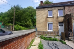La Confiance Immobilière vous présente cette petite maison à rénover avec jardin et 2 chambres, grenier éventuellement aménageable. COMPOSITION: Sous-sol: cave. Rez: pièce de séjour (19m²), cuisine semi-équipée (11m²). Etage sur 2 demi-niveaux: d'un côté une 1ère chambre (21m²) et de l'autre côté une salle de bains (3m²) avec wc, baignoire/douche et meuble double évier et une 2ème chambre (8m²). Grenier: éventuellement aménageable en 1 chambre supplémentaire, accès (escalier) à créer. Terrain: avant cour avec accès via une barrière en bois au jardin (recouvert de gravier) emmuré et clôturé, situé à l'avant de la maison, allée centrale bétonnée, remise en dur (3 pièces carrelées). Commodités: chauffage: 1 convecteur gaz; châssis PVC DV avec volets au rez; toiture avec une sous-toiture, non isolée, en bon état apparent; électricité à mettre en conformité; carrelages anciens au rez et plancher à l'étage. Remarques: 62m² habitables hors grenier, pignon latéral à assainir (humidité). Situation: dans le centre de Dampremy, à proximité de toutes commodités (transports en commun, écoles, commerces,...) et à 10 minutes de Charleroi. PEB: F 510 kWh/m².an. PRIX: offre à partir de 69.900 €, l'agent n'a aucun pouvoir de décision quant aux offres reçues. Meer weten?