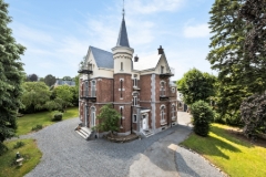 kasteel te koop met een apart koetsiershuis. Prachtige tuin voorzien van wandelpaden. Dit kasteel, gelegen in de gemeente Durbuy, werd gebouwd omstreeks 1890. Het heeft typische bouwkenmerken die eigen waren in de tijd van toen. Het interieur van het kasteel en de kamers is met het nodige respect, voor de oude stijl, doorheen de jaren in stand gebleven. De laatste commercieel activiteit was een “Bed-&-Breakfast”. Er zijn 7,5 slaapkamers en 6 badkamers. Van die kamers kunnen er 2 dienstdoen als suite. Badkamers zijn uitgerust met toilet, bad en/of douche en lavabo(s). Een mooie en stijlvolle salon, een verbruiksruimte naast de keuken met bar en een karaktervolle feestzaal. Wederom met respect voor de ‘oude’ elementen van het kasteel. Aan de verbruikszaal naast de keuken is een semi-veranda in dezelfde stijl. Het kasteel is volledig onder- keldert met ruimte voor een wijnkelder, wasplaats, berging, stockage en een ruimte die momenteel dienstdoet als slaapkamer, met zowel een toegang binnenin het kasteel of via een trap naar buiten. Het koetshuis doet nu dienst als “ontspanningsruimte/clubhuis” met aansluitend een keuken. Op de bovenste verdieping zijn er 2 slaapkamers, toilet en badkamer. De andere kant van de orangerie (koetshuis) vindt men een Franse tuin met een op te frissen wellness-gedeelte. Hierin kan een Finse sauna, jacuzzi, hamam, …. Het volledige domein, met een oppervlakte van meer dan 4.000m², is volledig omheind en voorzien van een automatische poort voor de oprit. EXTRA - Zonnepanelen op het dak van de wellness - Omheining werd vernieuwd straatzijde achteraan (met oog voor detail) en voorzien van nieuwe aanplantingen - Ramen zijn vervangen - Conformiteitsattest stookolie is voorhanden - Dak is volledig vervangen, idem dak van het koetshuis en alle torens - Buitenmuren werden gereinigd en behandeld - Crepi werd hersteld en opnieuw geschilderd - Daklijsten werden afgebrand en beschilderd - Vloerkleed op verdiepingen zijn al verwijderd Meer weten?