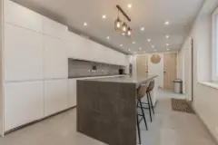 Instapklare woning met optie zelfstandig (bij)beroep Deze ruime, energiezuinige woning met een bewoonbare opp. van 317m² biedt omwille van de indeling en locatie verschillende mogelijkheden. Ideaal voor personen die op zoek zijn naar een plaats voor het uitoefenen van een zelfstandig (bij)beroep, nood hebben aan een ruim bureel, een kangoeroewoning,... U betreedt de handelsruimte via de inkomhal en krijgt toegang tot het bureel, de wachtruimte en de balie. Het pand is opgedeeld in verschillende niveaus met achteraan twee afzonderlijke behandelruimtes. Tevens beschikt dit gedeelte van het pand over een kitchenette met aansluitingen voor wasmachine en droogkast, een apart toilet en een stockage kelder. De inkom van de woning is uitgerust met een gastentoilet en geeft via de trap toegang tot de woonkamer. Een niveau hoger komt u tot de volledig geïnstalleerde keuken met eethoek en aparte technische ruimte. Opnieuw een niveau hoger komt u tot de master bedroom met dressing en ensuite badkamer. Verder via de trap komt u tot de tweede badkamer, de twee slaapkamers, het apart toilet en de berging. Op de zolderverdieping is het mogelijk om een vierde slaapkamer te voorzien. - EPC: 158 kWh/m² - Elektriciteit conform / 3-fasen - Totaalrenovatie (2015), dakgoten (2021), 14 zonnepanelen, aluminium ramen, slimme laadpaal (2023) - Beschikbaarheid overeen te komen Meer weten?