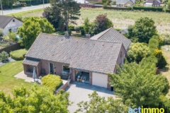 Gebouwd in 2008 op een ruim perceel van 2.876 m², biedt deze moderne villa een mooie architectuur, grote ruimtes en degelijke afwerkingen. Op het gelijkvloers geeft de inkomhal toegang tot een lichte woonkamer met ruime afmetingen en zicht op de groene omgeving. Naastliggend bevindt zich een ingerichte keuken. In de rechtervleugel van de woning zijn er een wasplaats, een garage en een bureau dat ook als extra slaapkamer kan gebruikt worden. De linkervleugel bestaat uit het slaapgedeelte met een hoofdslaapkamer, een badkamer met inloopdouche, ligbad, dubbele wastafel en toilet. De tweede slaapkamer heeft ook een eigen badkamer met inloopdouche en wastafel. Op de verdieping is er een grote polyvalente ruimte, geschikt als bureau of extra slaapkamer, en verschillende zolders die nog uitbreidingsmogelijkheden bieden. Buiten vindt men een groot terras en een aangelegde, volledig omheinde tuin die privacy biedt. Vooraan zijn er meerdere parkeerplaatsen, afgesloten met een automatische poort. Kenmerken: Bouwjaar 2008, centrale verwarming op aardgas via de vloer, gashaard in de woonkamer, aluminium ramen met dubbele beglazing, regenwaterput van 10.000 l, alarm en camera. Niet-contractuele informatie. De eigenaars behouden zich het recht voor om elk bod al dan niet te aanvaarden. Meer weten?