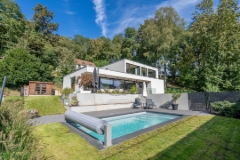 Schitterende passieve villa in een gegeerde buurt In de gegeerde wijk Bois du Foyau ontdekt u deze uitzonderlijke passieve villa met bijna 300 m² bewoonbare oppervlakte op een prachtig bebost perceel van 14a48ca met zwembad. Vanaf de inkomhal komt u terecht in een omgeving waar comfort, sereniteit en energieprestaties perfect samengaan. Volledig instapklaar, wacht deze woning enkel nog op uw persoonlijke toets om een echte thuis te worden – een zeldzame kans die u niet mag missen. Verdeeld over drie niveaus biedt de villa een grote flexibiliteit in indeling met 5 tot 7 slaapkamers en talrijke polyvalente ruimtes. Het gelijkvloers verwelkomt u met een ruime inkomhal die toegang geeft tot twee slaapkamers, een wasplaats, een apart toilet en een ouderlijke suite met dressing en eigen badkamer met vrij uitzicht op de tuin, evenals een grote garage. De tuinverdieping verrast met een lichtrijke leefruimte bestaande uit een bureau/speelkamer van ±16 m², een salon van ±40 m² met een elegante gashaard en een keuken/eetruimte van ±12 m², allemaal met toegang tot de tuin via grote schuiframen. Een technische ruimte, een apart toilet en een berging vervolledigen dit niveau. De verdiepingen omvatten een ruime ouderlijke suite van ±28 m², twee mooie slaapkamers verdeeld over 2 niveaus (±23 m² en ±26 m²) en twee extra kamers van ±12 m² en ±15 m². Een douchekamer van ±4 m², een wasplaats en twee aparte toiletten vervolledigen het geheel. De buitenruimtes, zorgvuldig aangelegd met oog voor gezelligheid, bieden een zuidoostelijk georiënteerde tuin, twee terrassen waarvan één met vuurplaats, een verwarmd buitenzwembad met automatische regeling en elektrische polycarbonaat-afdekking, een tuinhuis en drie parkeerplaatsen. De villa is uitgerust met hoogwaardige voorzieningen zoals zonnepanelen, een lucht-water warmtepomp, ventiloconvectoren, een dubbelstrooms ventilatiesysteem, driedubbel glas, een regenwaterput en een CO₂-waterverzachter. Deze hedendaagse en duurzame villa, genesteld in een groene omgeving, belichaamt een unieke levensstijl die elegantie, comfort en energie-efficiëntie verenigt. Meer weten?
