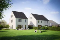 Alleenstaande nieuwbouwwoning met 3 slaapkamers op een perceel van 6are 69ca in een rustig en groen gelegen verkaveling. De woning is als volgt ingedeeld: gelijkvloers: inkomhal met trap naar verdieping, toilet met handwasbakje, woonkamer opgedeeld in zithoek en eethoek, afzonderlijke keuken, berging/technische ruimte, carport voor 1 voertuig; verdieping: nachthal, 3 slaapkamers, badkamer met douche lavabo en toilet. De kopers kunnen de afwerking van keuken, badkamer, vloeren en binnendeuren nog mee kiezen volgens de budgetten hiervoor voorzien in het lastenboek. Zo kunnen zij de woning naar hun eigen smaak mee inrichten. Er is tevens een mogelijkheid om de woning zonder deze afwerking aan te kopen. Meer weten?