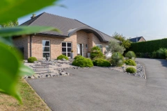 Gebouwd in 2008 op een ruim perceel van 2.876 m², biedt deze moderne villa een mooie architectuur, grote ruimtes en degelijke afwerkingen. Op het gelijkvloers geeft de inkomhal toegang tot een lichte woonkamer met ruime afmetingen en zicht op de groene omgeving. Naastliggend bevindt zich een ingerichte keuken. In de rechtervleugel van de woning zijn er een wasplaats, een garage en een bureau dat ook als extra slaapkamer kan gebruikt worden. De linkervleugel bestaat uit het slaapgedeelte met een hoofdslaapkamer, een badkamer met inloopdouche, ligbad, dubbele wastafel en toilet. De tweede slaapkamer heeft ook een eigen badkamer met inloopdouche en wastafel. Op de verdieping is er een grote polyvalente ruimte, geschikt als bureau of extra slaapkamer, en verschillende zolders die nog uitbreidingsmogelijkheden bieden. Buiten vindt men een groot terras en een aangelegde, volledig omheinde tuin die privacy biedt. Vooraan zijn er meerdere parkeerplaatsen, afgesloten met een automatische poort. Kenmerken: Bouwjaar 2008, centrale verwarming op aardgas via de vloer, gashaard in de woonkamer, aluminium ramen met dubbele beglazing, regenwaterput van 10.000 l, alarm en camera. Niet-contractuele informatie. De eigenaars behouden zich het recht voor om elk bod al dan niet te aanvaarden. Meer weten?