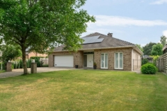 Ruime instapklare gelijkvloerswoning met riante leefruimte, 3 slaapkamers, 2 badkamers en een grote inpandige garage, gelegen in een doodlopende straat. Via de inkomhal met vestiaire en gastentoilet bereiken we de leefruimte (ca.45m²). De vele raampartijen in de leefruimte geven uit op de veranda, de tuin en het deels overdekte terras. Aansluitend aan de leefruimte vinden we de uitgeruste keuken (ca.13m²) met aansluitend een riante berging (ca.12m²). Verder vinden we op het gelijkvloers de hoofdslaapkamer (ca.17m²) met ensuite een eerste badkamer voorzien van een douche, toilet en een dubbel wastafelmeubel. Slaapkamer 2 en 3 (ca. 14 en 11m²) en de tweede badkamer met douche, bad, dubbel meubel en toilet maken het gelijkvloers compleet. Een extra troef is de ruime inpandige garage (ca.36m²) met automatische poort. De enorme volledig geïsoleerde zolder (over de volledige oppervlakte van de woning) is te betreden via een vlizotrap in de garage. De omheinde tuin is voorzien van een deels overdekt terras (ca.45m²) en een houten tuinberging. Troeven: - Schitterend gelegen op een rustige locatie - Energiezuinige woning - 14 zonnepanelen met thuisbatterij van 5kW - Ventilatiesysteem type C - Alarminstallatie - Kruipruimte Oppervlaktematen zijn indicatief Meer weten?