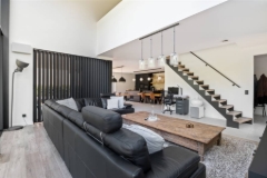In een rustige straat aan de rand van het natuurgebied 'De Most' bevindt zich deze stijlvolle en luxueus afgewerkte villa, omgeven door groen en privacy. De woning is gelegen op een prachtig perceel van 2.070 m² en biedt een harmonieus samenspel van ruimte, licht en comfort. Op het gelijkvloers verwelkomt de inkomhal je met een gastentoilet en vestiaire, en leidt ze naar twee aparte bureauruimtes – ideaal voor wie wonen en werken wil combineren. De leefruimte is bijzonder ruim en sfeervol ingedeeld met een aparte tv-hoek, een gezellige zithoek met open haard, een bibliotheek en een elegante eetkamer met haardcassette. Grote raampartijen zorgen voor een prachtig zicht op de aangelegde tuin en de achterliggende bosrand. De keuken sluit naadloos aan op de leefruimte en is uitgerust met hoogwaardige toestellen zoals een Lacanche fornuis, vaatwasser, combi-oven, koelkast en diepvriezer. Een royaal kookeiland met zitplaatsen maakt van deze keuken een ideale plek voor zowel dagelijks gebruik als gezellige momenten met gasten. Aansluitend bevindt zich een ruime bijkeuken/wasplaats, voorzien van maatkasten. Op de eerste verdieping geeft de nachthal toegang tot vier slaapkamers, een apart toilet en meerdere ingemaakte kasten. De master suite beschikt over een dressing en een badkamer met ligbad, inloopdouche en dubbele wastafel. Twee van de andere slaapkamers hebben elk een eigen dressing en douchekamer. De tweede verdieping werd ingericht als een volwaardige extra leeflaag, met een vijfde slaapkamer, een gezellige zithoek, dressing en een vierde badkamer. Ook de technische ruimte bevindt zich op dit niveau. De woning is gedeeltelijk onderkelderd. Via een vaste trap bereik je een kelderruimte van circa 65 m², perfect als extra berging of hobbyruimte. In de tuin werd een multifunctioneel bijgebouw met overdekt terras opgetrokken, bestaande uit twee carports en een aparte berging. Een houten tuinhuis vervolledigt het geheel. De tuin zelf is een groene oase, voorzien van een verwarmde zwemvijver, automatisch beregeningssysteem en maximaal genot van de rustige, natuurlijke omgeving. De woning is uitgerust met zonnepanelen, een alarmsysteem, Sonos muziekinstallatie, 2 laadpalen, vloerverwarming en een warmtepomp voor de zwemvijver. Regenwater wordt hergebruikt voor toilet en wasmachine. Mogelijkheid tot aankoop van extra aanpalende gronden: een achterliggend bosperceel van 1 ha 2a en een naastliggend perceel (verkavelbaar) van 11a 84ca. Meer weten?