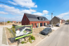 Prachtig wonen in alle rust en toch dicht bij het centrum van Langemark-Poelkapelle en vlotte verbinding naar steden als Diksmuide, Ieper en Poperinge.Nieuwbouwproject 'De Mangelaar' is een unicum op de markt. De woningen zijn gerealiseerd door ontwikkelaar Leoliz (Nieuwbouwontwikkelaar, die met heel wat ervaring in de bouw, zijn klanten graag persoonlijk begeleidt doorheen het bouwtraject).In de ontwerp fase werd de nodige aandacht besteed aan het ruimtelijke gevoel in de woning en dit in combinatie met toepassing van energiezuinige technieken en duurzame materialen bekomen we zo een uniek aanbod binnen het nieuwbouwsegment. We kunnen u woningen aanbieden met maar liefst 220m² aan bewoonbare oppervlakte en er is keuze uit aanbod met 3 tot zelfs 5 ruime slaapkamers. Wagens krijgen plaats in een inpandige garage of een ruime carport gekoppeld aan de woning.Er werd gekozen om de woningen af te werken met vloerverwarming (zowel beneden als boven), koppeling met een warmtepomp behoort tot de mogelijkheden. Voor ventilatie werd gekozen voor systeem D, dus met warmterecuperatie. In het lastenboek merk je snel op dat de nodige aandacht is besteed om voor de afwerking van de woning te kiezen voor kwaliteit. De budgetten vooropgesteld voor badkamer, keuken en vloeren dekken ruim de noden en kunnen op heden nog volledig verder gepersonaliseerd worden. Het project 'De Mangelaar' zal in verschillende fases gebouwd worden, iedere fase gekenmerkt door een eigen opleveringsdatum.Op heden zijn de werken gestart voor woning 1 en 2 (koppelwoningen langs de Mangelaarstraat).Het project zal vervolgens verder gerealiseerd worden met 2 rijwoningen en 4 halfopen bebouwingen met als kers op de taart één alleenstaande villa op een perceel van maar liefst 726m².Groen wonen:De woningen zijn allen gebouwd volgens de BEN-normering, vanuit de vergunning dient een energielabel bekomen te worden lager dan E25. Dit betekent ook dat u een korting geniet van 50% op uw onroerende voorheffing gedurende de eerste 5 jaar. In samenspraak met de bouwheer kan echter ook een volledige vrijstelling bekomen worden, mits enkele extra aanpassingen bovenop de standaard (extra zonnepanelen,…).Troeven van deze woning: Woningen met 4 ruime slaapkamers (één slaapkamer op het gelijkvloers mogelijk); Uniek perceel met panoramische verzichten; Zolder als extra bergruimte te gebruiken; Vloerverwarming (beneden en boven); Ventilatiesysteem D; Zonnepanelen; Regenwaterput (7.000 tot 10.000L); Ruime berging gekoppeld aan tuin; Avondzon in de tuin; Ruime carport voor 2 wagens + oprit; Terras en tuinafsluiting inbegrepen in prijs; Op heden vrije keuze in de materialen, afwerking op maat.WENS JE EEN BROCHURE VAN DIT PROJECT TE BEKOMEN? (incl. alle verkoopplannen, lastenboek en totaalprijs), neem dan snel contact op met één van onze makelaars. Deze energiezuinige nieuwbouwwoningen zijn ook uiterst geschikt als opbrengsteigendom. De oplevering van deze nieuwbouwwoningen zal gebeuren in verschillende fases.Eerste fase oplevering voorzien midden/najaar 2024. Meer weten?