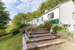 *** OPTION - DANS L'ATTENTE DE LA SIGNATURE DU COMPROMIS *** Charmante villa de plain-pied, idéalement nichée dans un écrin de verdure à Chapelle-Saint-Lambert et offrant une vue exceptionnelle sur la vallée verdoyante de Lasne depuis tous les espaces de vie. Construite en 1970 sur un vaste terrain de 24ares 83centiares orienté Sud-Ouest, la maison bénéficie d’une magnifique luminosité et d’espaces de vie fonctionnels. Elle développe une confortable surface habitable de 125m² (+ caves/rangements = +/- 160m² construits) et se compose comme suit : hall d'entrée avec WC visiteurs et vestiaire, chaleureux séjour (32m²) agrémenté d'un poêle à bois, cuisine séparée équipée (9,5m²), deux chambres (17,5 et 11,5m²) et une salle de douche (8m²). Au rez-de-jardin, on trouve une troisième chambre/bureau/espace polyvalent (15m²) avec une entrée indépendante ainsi qu'une buanderie/chaufferie. Un vaste atelier de 25m² complète l'intérieur de la villa. À l’extérieur, vous profiterez d’une spacieuse terrasse de 30m² et d’un magnifique jardin offrant calme et intimité. DIVERS : PEB/D - Toiture d'origine reconditionnée et réisolée en 2022 - Chauffage central au mazout (Buderus - citerne enterrée (3000L)) - Production d'eau chaude sanitaire via chaudière - Châssis double vitrage PVC (2019) - Electricité non conforme - Citerne d'eau de pluie,... Véritable havre de paix et coup de cœur assuré à visiter sans tarder! Descriptif complet sur www.TRIOR.be Meer weten?