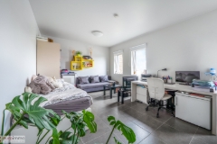 Gelegen aan de ring van Brugge vindt u de residentie Kotville. De groene accenten zijn typerend voor deze moderne studentenresidentie die vele studenten aantrekt. Met 125 verhuurde kamers, een slimme indeling, actief coachende conciërge en een toffe groep studenten is dit een prima investering.En voor u als investeerder is er nog meer goed nieuws! Deze kamer is (net als al de anderen) reeds verhuurd en biedt dus een gegarandeerd rendement vanaf dag 1. Ook voor kopers die hun eigen kinderen willen een mooie studentenflat geven zijn hier op de goede plek. Helemaal omdat deze kamer net dat tikkeltje extra biedt!De studentenkamer is uitgerust met eigen sanitair (modern wasmeubel, inloopdouche, hangtoilet), bureau, kleerkast, bed, hangmeubel, TV. Wat deze kamer onderscheidt is duidelijk de hoekligging met veel lichtinval en de grote ruimte!Verder beschikt de residentie over ontspanningsmogelijkheden met onder meer pingpongtafels en beamers in de zithoeken. Fietsberging is voorzien zowel afgesloten ondergronds als vrij bovengronds. E-peil: 64.*De foto's zijn allen genomen in het gebouw maar niet noodzakelijk in de betreffende kamer. Deze zijn louter illustratief om de sfeer weer te geven. Meer weten?