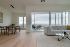 Vanop de negende verdieping ontvouwt zich een uitzicht dat zelden in Roeselare te vinden is. Dit royale appartement ademt licht en rust, met kamerhoge ramen die de skyline én het groene stadsweefsel samenbrengen in één panoramisch decor.De leefruimte met open keuken vormt het kloppende hart van de woning — strak, functioneel en volledig gericht op het brede terras. Daar geniet je van de ondergaande zon boven de stad, met de kerktorens als herkenningspunt in de verte.Met drie slaapkamers, 2 badkamers waarvan 1 met bad en meer dan 130 m² aan wooncomfort is dit appartement even praktisch als verfijnd. De afwerking is van hoog niveau: natuurlijke materialen, warme vloeren en een tijdloze kleurstelling brengen harmonie in elk detail.Een unieke kans voor wie stedelijk wil wonen met het gevoel van een penthouse. De prijs werd recent verlaagd met 50.000 euro, waardoor dit één van de meest aantrekkelijke kansen binnen het project wordt.Prijs exclusief kosten Meer weten?