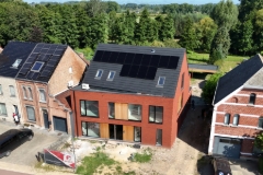Dit kleinschalig nieuwbouwproject telt 3 ruime entiteiten (waarvan 33% verkocht). Deze triplex-woning is 190m² en is landelijk en strategisch gelegen, dit omgeven van groen en toch vlakbij het station, bushalte en makkelijke verbindingswegen. Bij het binnenkomen is er een traphal met gastentoilet, een ruime lichtrijke woonkamer met grote raampartijen en zicht op het terras en een ruime private tuin, open keuken met bijhorende berging. Op de verdieping bevindt zich een nachthal, apart toilet, badkamer met inloopdouche, 2 slaapkamers en een dressing. De zolder werd ingericht met 2 extra kamers & een 2e badkamer. U kan volgens de voorziene budgetten keuken, binnendeuren en laminaat kiezen naar eigen smaak (overige zaken zijn in afwerking). Er is vloerverwarming op basis van lucht/waterwarmtepomp, gemeenschappelijke regenwaterput, ventilatiesysteem C+, zonnepanelen, aluminium met hoogrendementsbeglazing, .. kortom, een volledig instapklaar en kwalitatieve woonst zal worden afgeleverd. Verplicht dubbele carport aan te kopen. Er is mogelijkheid om achtergelegen grond bij aan te kopen. Prijzen excl. nutsvoorzieningen, BTW, verkooprechten en ereloon notaris. Voor meer informatie, plannen en lastenboek: ### of ### Meer weten?