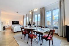 Deze duplex van 177m2 (volgens PEB) ligt vlakbij Place Stéphanie en is volledig gerenoveerd in 2025. Het heeft drie slaapkamers en drie badkamers. Aan de ene kant van de hal is de woonkamer van 43 m2 met open keuken, met hoge plafonds en veel licht. Aan de andere kant een gastentoilet en een master suite van 20m2 met kleedkamer/ aparte studeerkamer, een doucheruimte met toilet en een privéterras. Op de onderste verdieping van de duplex zijn er nog twee slaapkamers, elk met een eigen doucheruimte en dressing. Een toilet op de overloop, wasruimte, bijkeuken en berging maken deze woning compleet. Kelder in de kelder. PEB B- Voorziening voor kosten van €115/maand, inclusief onderhoud van gemeenschappelijke ruimtes, lift en huur van brandblussers. Onmijddellijk beschikbaar, eerste bewoning! Meer weten?