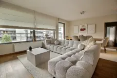 PLASKY: Located on the 5th floor of a well-maintained building, magnificent 2 bedroom apartment of 95m². It is composed as follows: entrance hall with small cloakroom area, bright living room - dining room area with access to the terrace, fully equipped semi-open kitchen, two spacious bedrooms, a bathroom and a separate toilet. Refreshment work in progress. Private cellar in the basement. Close to shops, public transport, schools and European Institutions. To visit quickly with Bathim & Co. Meer weten?