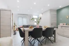 PLUS DE VISITES POSSIBLES....... Située au bord de la campagne, dans un quartier très calme et proches de toutes les commodités (commerces, écoles, axes autoroutiers,...), Dreammo vous propose cette magnifique maison. Celle-ci dispose d'un hall d'entré, grand living de 43m², cuisine type USA équipée, wc éparé, buanderie ainsi qu'une chambre avec salle de douches! Au 1er étage: hall de nuit, deux chambres, salle de bains avec douche italienne et wc séparé. Equipements: châssis double vitrage pvc, chauffage central, adoucisseur d'eau,... Idéal pour famille ou couple! Coup de foudre assuré! Infos et visites DREAMMO: ### Meer weten?