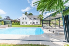 Schitterende villa Genesteld achteraan in een privé-domein, aan het einde van een eigen oprijlaan, biedt deze charmante villa in de zeer gegeerde wijk Faubourg u een uitzonderlijke levensstijl, volledig uit het zicht, op een zuidgericht perceel van ±16 are 45 centiare. Gebouwd in 1973 en volledig smaakvol gerenoveerd tussen 2020 en 2022, combineert ze vandaag de charme van weleer met hoogstaand modern comfort. Bij het binnenkomen zet een ruime inkomhal met vestiaire en gastentoilet meteen de toon: royale volumes, verfijnde afwerkingen en overvloedig licht. De open en warme leefruimtes genieten van een open haard en sluiten harmonieus aan bij de hyper-geïnstalleerde hedendaagse keuken, waardoor een gezellige en functionele leefomgeving ontstaat. Alles opent wijds naar het terras en de tuin, wat zorgt voor een prachtige verbinding tussen binnen en buiten. Een wasruimte en een eerste slaapkamer (of speelkamer) met en-suite douchekamer vervolledigen dit niveau ideaal. Op de eerste verdieping verdeelt de nachthal een bureauruimte (of slaapkamer), een schitterende ouderlijke suite bestaande uit een ruime slaapkamer, een op maat gemaakte dressing en een privé douchekamer, evenals twee andere slaapkamers en een extra douchekamer, ontworpen voor het comfort van het hele gezin. De tweede verdieping biedt een polyvalente ruimte die naar wens kan worden ingericht: speelkamer, home office, fitnessruimte of extra slaapkamer. Buiten nodigt de fraai aangelegde tuin uit tot ontspanning, met als kers op de taart een verwarmd en overdekt zwembad, zodat u het hele jaar door van waterpret kunt genieten. Een tuinberging vervolledigt het geheel. Op technisch vlak werd aan alles gedacht: de villa is volledig voorzien van domotica en uitgerust met een gascondensatieketel, Quooker, centrale stofzuiger, waterverzachter, elektrische rolluiken, automatische beregening, regenwaterput en aansluiting op het rioleringsnet. Deze zeldzame eigendom combineert ruimte, licht, comfort en moderniteit in een groene en veilige omgeving en zal ongetwijfeld gezinnen aanspreken die op zoek zijn naar een instapklare woning die elegantie en functionaliteit verenigt in een van de meest gegeerde buurten van de regio. Ook ideaal voor vrije beroepen dankzij de grote kamer op het gelijkvloers. Meer weten?