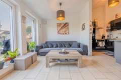 Ontdek deze prachtige duplex te koop in Holzem, een moderne en luxueuze residentie gelegen op de route de Capellen in de gemeente Mamer. Deze woning biedt een perfecte combinatie van comfort, energie-efficiëntie en elegant design binnen een project van vier tweegezinswoningen, elk bestaande uit twee duplexen. Met een vraagprijs van 849.269 euro is dit een unieke kans voor wie op zoek is naar een hoogwaardige woning in een rustige en landelijk aangelegen omgeving, dicht bij de bruisende stad Luxemburg. Deze duplexen kenmerken zich door hun strakke architectuur en royale woonoppervlakte tussen 107 m² en 133 m², waardoor er voldoende ruimte is voor gezinnen die comfort en functionaliteit waarderen. Deze specifieke woning, het tweede duplex van huis MIMOSA, biedt een woonoppervlakte van ongeveer 110,18 m² en beschikt over drie slaapkamers, waardoor het ideaal is voor gezinnen of kopers die extra ruimte zoeken. De indeling omvat een ruime inkomhal, een grote woonkamer gecombineerd met een open keuken en eethoek, twee badkamers, een apart toilet, een wasruimte en een praktische binnenparking. De grote zuidgerichte raampartijen zorgen voor een overvloed aan natuurlijk licht en geven toegang tot een gezellige terras van ca. 13,69 m², perfect voor zomeravonden en buitenactiviteiten. De privé-tuinen bieden bovendien aangename buitenruimtes om te genieten van de rust en natuur die deze locatie ademt. De afwerking van de duplex combineert comfort met energiezuinigheid; voorzien van driedubbel glas, vloerverwarming en dubbele ventilatie met warmteterugwinning, garandeert deze woning een hoog wooncomfort met minimale energiekosten. De ligging in Holzem biedt tal van voordelen: niet ver van Luxemburg-stad, bevindt deze locatie zich op korte afstand van alle gemakken van de stad terwijl het toch in een rustige, natuurlijke omgeving ligt. Het project wordt gekenmerkt door zijn moderne uitstraling en hoge kwaliteitsnormen, met technische voorzieningen zoals een EPC-score A die zorgen voor een energiezuinige woning. Het inbegrepen parkeerplaatsje binnen de garage maakt het geheel compleet, wat het leefcomfort verhoogt. Gezien de vaste verkoopprijs inclusief btw van 3% en 17% (voor hoofdverblijf), biedt dit vastgoed niet alleen een uitstekende investering maar ook zekerheid qua prijs. Voor verdere informatie of het plannen van een bezoek, kunt u contact opnemen via telefoon of e-mail; ons team staat klaar om al uw vragen te beantwoorden en u te begeleiden bij uw aankoopproces. Dit is zonder twijfel een uitzonderlijke gelegenheid om te investeren in een modern, kwalitatief hoogstaand woonproject in één van de meest aantrekkelijke regio's rondom Luxemburg. Meer weten?