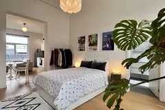 BEZOEK AANVRAGEN ALLEEN VIA DEZE LINK: ### Immobilière Hendrix biedt u dit appartement/studio met 1 slaapkamer van ± 58 m² aan, dat zich onderscheidt door zijn luxe uitstraling en zijn mooie hoge plafonds en sierlijsten. Het appartement bestaat uit een lichte woonkamer en een volledig uitgeruste keuken. De ruime slaapkamer staat in directe verbinding met de badkamer en de wasruimte. De toegang tot het terras maakt het geheel compleet. Een privékelder in de kelder is inbegrepen. Voorzieningen voor gemeenschappelijke kosten: 30 € / maand. Individuele meters. Beschikbaar op 1 december 2025. EPC: C — nr. 20210413 ### Bekijk al onze panden op: ### Meer weten?