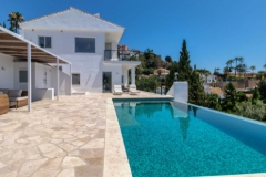 Deze vrijstaande villa in Torremuelle, Benalmádena is volledig gerenoveerd en ligt op een verhoogde locatie met prachtig uitzicht op de Middellandse Zee. De woning beschikt over vier slaapkamers en drie badkamers, waaronder een volledig zelfstandig gastenappartement met eigen keuken en badkamer.Alle voorzieningen van de wijk zijn gemakkelijk bereikbaar: de internationale school, cafés, winkels, de padelclub en het strand. Ook het treinstation met verbindingen naar Málaga, de luchthaven en Fuengirola ligt dichtbij.Binnen biedt de woning lichte, moderne leefruimtes met een open woon- en eetkamer die aansluit op een eigentijdse keuken met kwarts werkbladen, een centraal eiland en geïntegreerde apparatuur. Er is ook een aparte wasruimte. De woonkamer opent naar een terras met prachtig uitzicht – ideaal om te ontspannen of gasten te ontvangen.Buiten zijn er ruime open en overdekte terrassen, een buitenkeuken met barbecue en een verwarmd zoutwater infinity zwembad met uitzicht op zee. Inclusief garage, airconditioning (warm/koud) en elektrische rolluiken.climatization Meer weten?