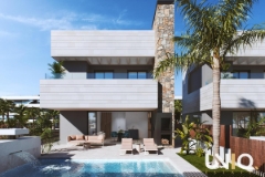 Welkom op dit fantastisch domein, net buiten Roldán-Centrum, waar je kan sporten, ontspannen, zwemmen, ... naar hartenlust. Het kloppend hart van deze urbanisatie is het minimeer met strandjes en het aanpalend restaurant/bar. Ook zijn er padelterreinen en andere entertainmentsvormen beschikbaar voor alle bewoners. Nooit een saaie dag hier!Deze villa's zijn voorzien van zowel binnen- als buitenverlichting, waardoor je de sfeer steeds kunt aanpassen aan jouw mood. De moderne keuken is volledig uitgerust en de keukenapparaten zijn inbegrepen, zodat je als hobbykok meteen aan de slag kan. Op het solarium is er tevens een buitenkeuken inbegrepen in de prijs.Daarnaast bieden de buitenruimtes alle nodige aansluitingen, waaronder water, tv en elektriciteit, vergezeld door stopcontacten. Voorzieningen alom om je buitenruimte naar je eigen noden en wensen aan te passen.Wordt het mediterraans klimaat je even te veel? Neem een verfrissende duik in het privé zwembad. Voor jouw gemak is er een parkeerplaats voor de wagen beschikbaar.De villa's zijn uitgerust met zonnepanelen op het dak, waardoor je profiteert van energie-efficiëntie en lage energiekosten.Binnenkort jouw stukje paradijs onder de Spaanse zon? Meer weten?