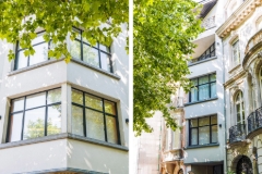 Victoire-Junot stelt u dit prachtige volledig gerenoveerde viergevelappartement voor met een oppervlakte van ± 305 m², plus terras en een aparte studio. Gelegen in een elegante, met bomen omzoomde straat in de wijk Prins van Oranje, nabij de velden van Percke, is het als volgt ingedeeld: Ruime inkomhal met vestiaire en gastentoilet, prachtige leefruimtes (± 75 m²) badend in natuurlijk licht met toegang tot het terras dat geniet van een prachtig open uitzicht op de omliggende natuur, tv-salon (± 25 m²), volledig uitgeruste keuken, 4 slaapkamers waaronder een master bedroom met en-suite badkamer, en 2 extra doucheruimtes. Op het gelijkvloers: aparte slaapkamer met doucheruimte (ideaal voor personeel, bureau of logeerkamer), een grote kelder, en twee verplichte parkeerplaatsen (€60.000). Gemeenschappelijke ontspanningsruimte. EPC: E+ Meer weten?